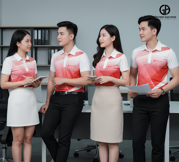 Áo Đồng Phục Công Sở 3D Màu Đỏ Trắng