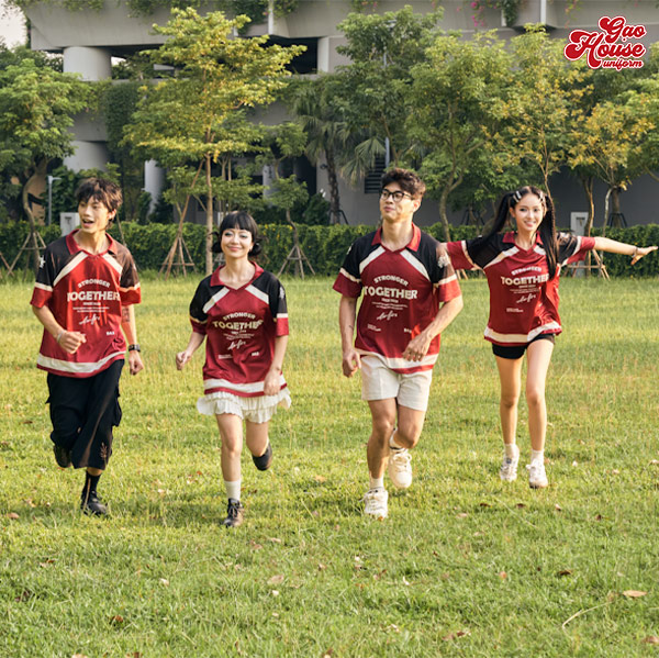 “Stronger Together” – mẫu áo đồng phục lớp đỏ đô cực cháy của Đồng phục Gạo House là lựa chọn dành riêng cho những tập thể không ngại nổi bật và luôn chiến hết mình. Gam đỏ đô rực lửa phối cùng line đen – trắng tương phản mang đến cảm giác mạnh mẽ, dứt khoát và cực kỳ thời thượng. Phom oversize phóng khoáng kết hợp họa tiết chữ in nổi tạo hiệu ứng bắt sáng, giúp cả team trông như một đội hình thực thụ – đồng lòng, tự tin và luôn sẵn sàng bùng nổ ở mọi sân chơi.
