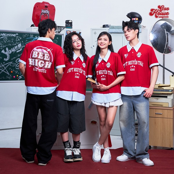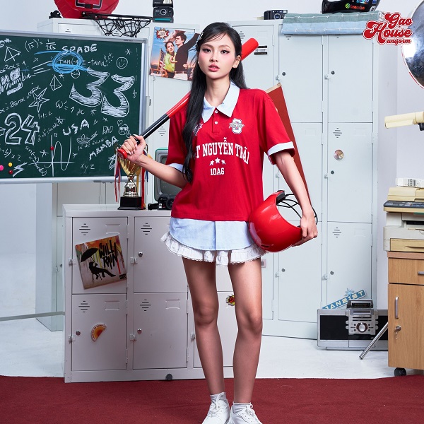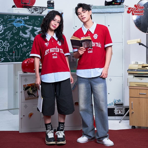 BST Áo Lớp Polo Đỏ Phối Sơ Mi Trẻ Trung Đầy Nhiệt Huyết