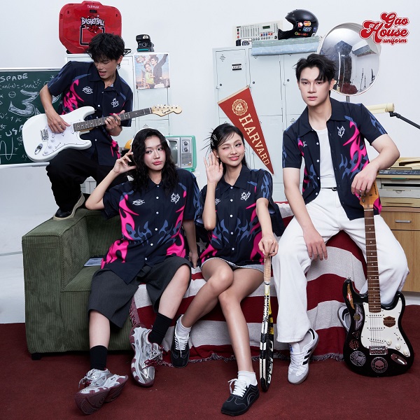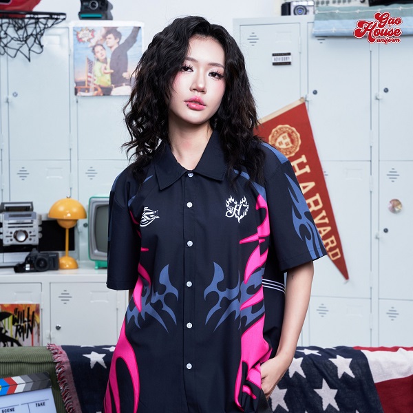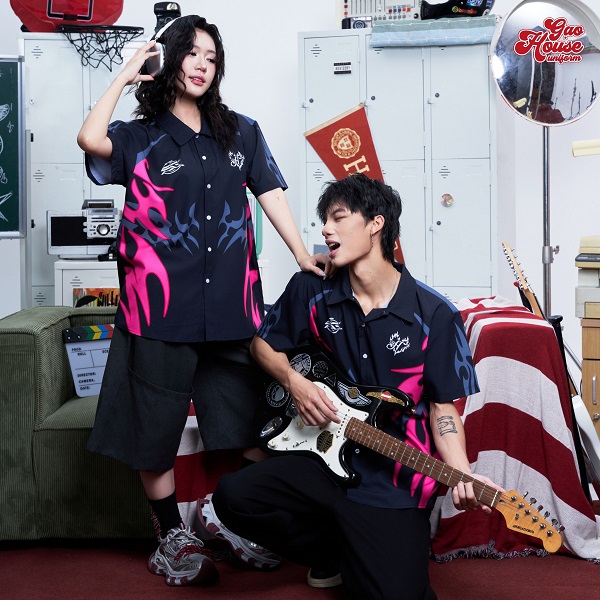 Áo Lớp Sơ Mi Họa Tiết Lửa Xanh Hồng Siêu Chất Cho Gen Z