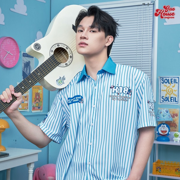 Áo Lớp Sơ Mi Sọc Xanh In Họa Tiết Phi Hành Gia Siêu Chất