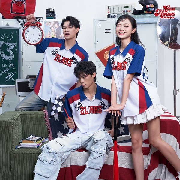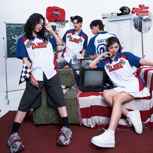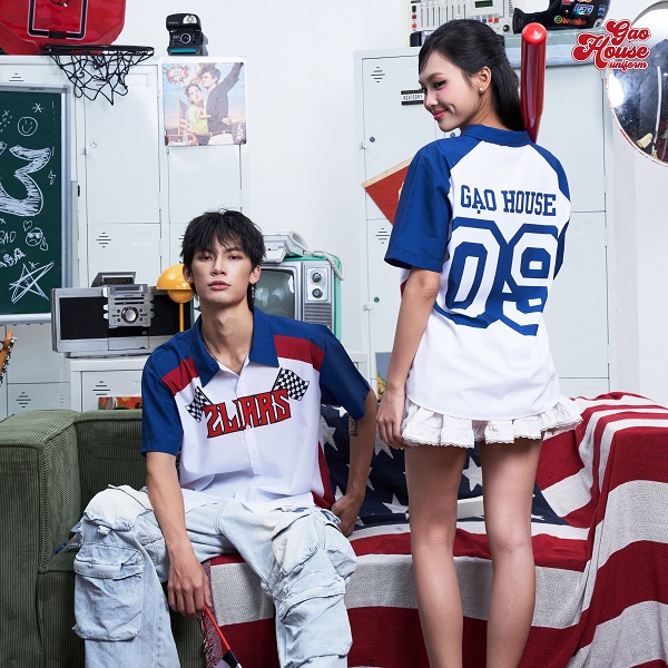 Áo Sơ Mi Đồng Phục Lớp Màu Trắng Phối Xanh Đỏ Cực Cool