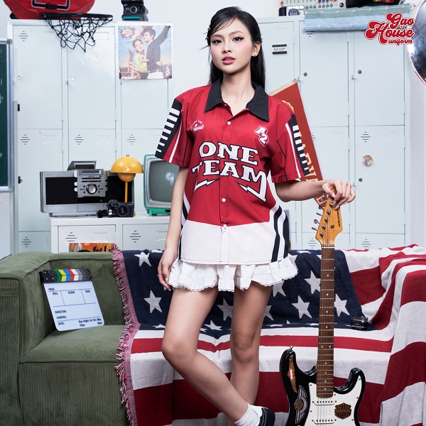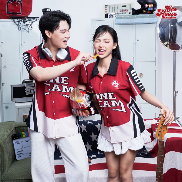 Mẫu Áo Lớp Sơ Mi One Team Đỏ Trắng Đen Thể Thao Cá Tính