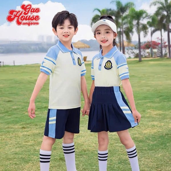 Ngay từ khi vừa mới ra mắt, mẫu đồng phục mầm non màu bé phối xanh dương tại Gạo House đã nhận được sự hưởng ứng nhiệt tình từ các bậc phụ huynh. Mẫu áo được kết hợp hoàn hảo giữa tone màu be và xanh dương dịu dàng. Trên nền màu be trung tính, màu xanh được phối độc đáo ở phần cổ và điểm nhấn bằng các đường line ở tay áo. Áo được may theo form polo rộng rãi, chất liệu vải cao cấp giúp các bé tự tin thể hiện cá tính, giữ được cảm giác thoải mái, dễ chịu. Mẫu áo mầm non này không chỉ đẹp mắt mà còn rất dễ phối đồ, phù hợp với độ tuổi của các bé.